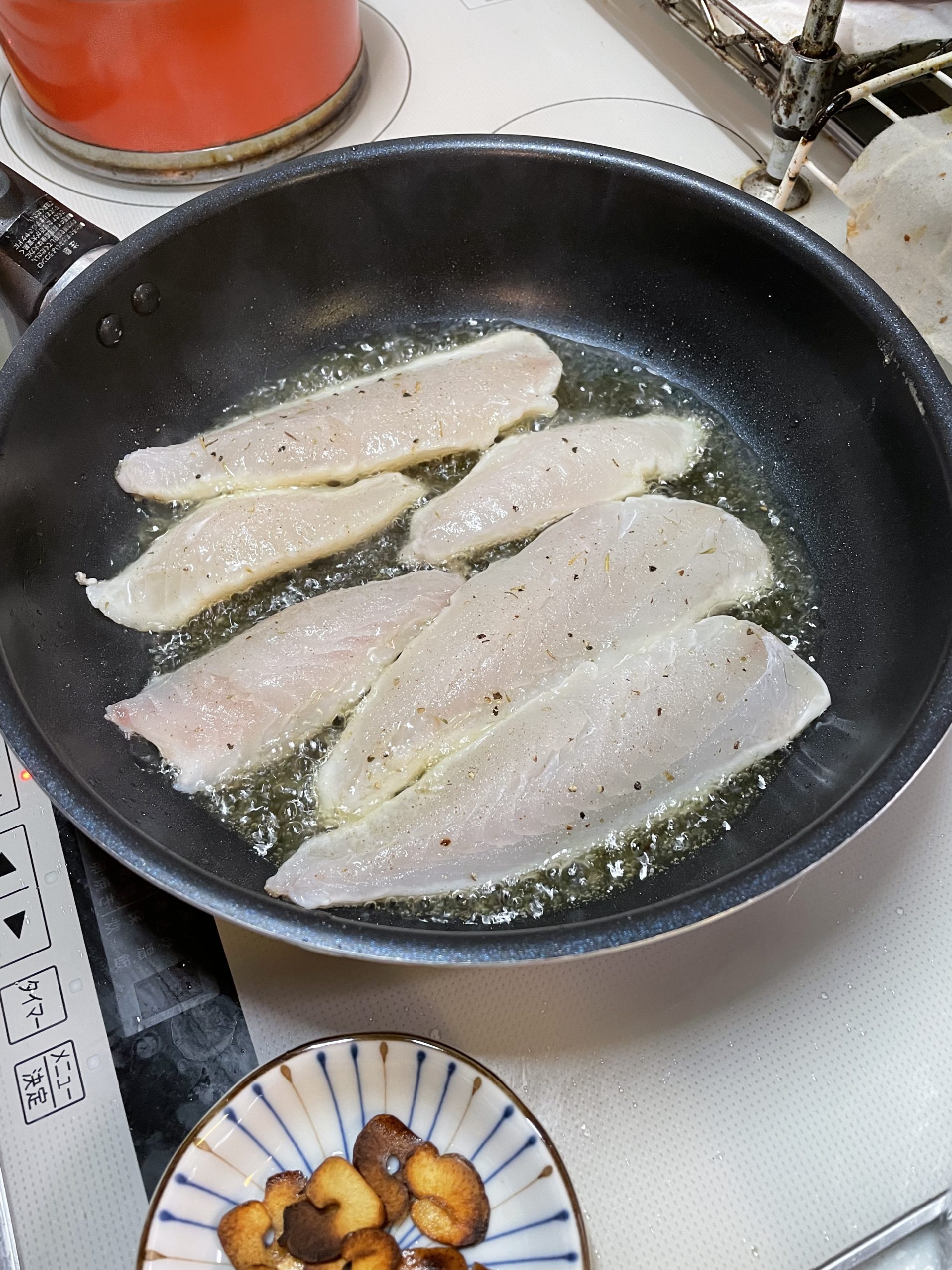 - 魚の身をひっくり返して、2,3分焼く